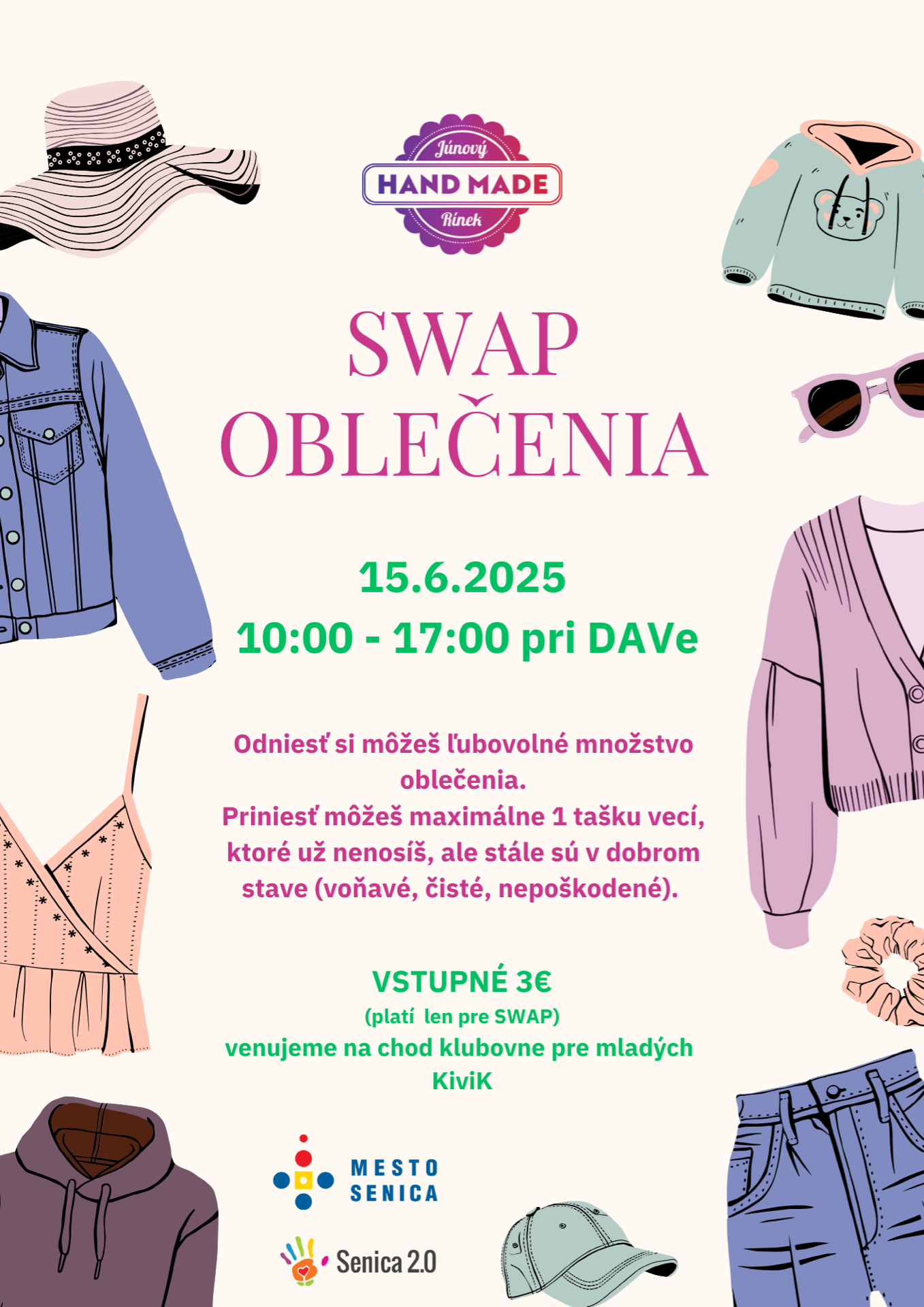 Vstupné sa platí len do Swap stanu. Vstup na podujatie Júnový HAND MADE Rínek je zdarma.
